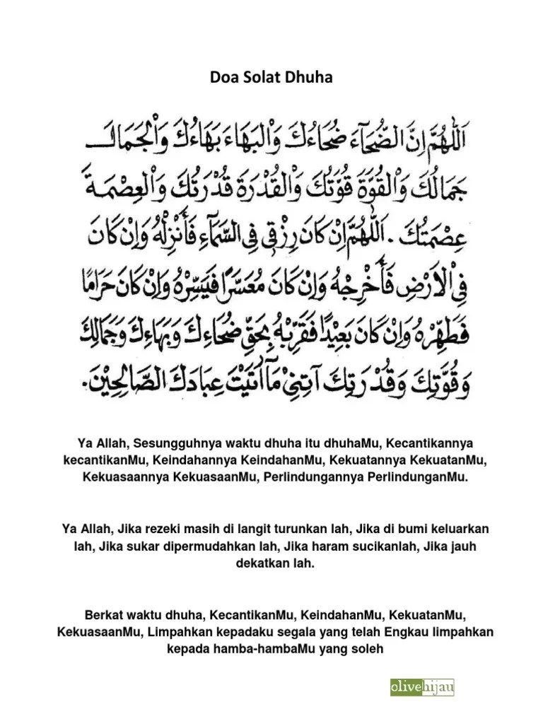 Bulan safar tahun 11 hijrah 3. Panduan lengkap mengenai pembahagian waktu solat boleh dibaca pada pautan ini: Haji wida' pada 10 hijrah 4. Solat sunat dhuha dilakukan apabila matahari telah naik pada waktu pagi sekadar satu galah tingginya. Dec 17, 2014 · بِسۡـــــــــمِ ٱللَّهِ ٱلرَّحۡـمَـٰنِ ٱلرَّحِيمِ اَللَّهُمَّ صَلِّ عَلَى مُحَمَّد وَعَلَى آلِ مُحَمَّدٍ. Tempoh waktu ini berlarutan sehingga hampir gelincirnya matahari, iaitu sebelum masuk waktu zuhur. Solat dhuha yang dilakukan pada waktu ini disebut sebagai solat awwabin. Dan dilakukan dalam satuan 2 rakaat sekali salam. Di madinah iaitu di rumah saidatina aisyah 6. Doa rabitah (دعاء الرابطة) ialah doa mohon agar dieratkan jalinan hati sesama manusia sebagaimana 'perikatan' pada maksud rabitah itu sendiri. Sebelumnya kita sudah membahas daftra surat dalam al quran … Nabi wafat pada waktu dhuha, hari isnin, 12. Berikut adalah waktu yang diharamkan solat (sebagian ulama mengatakan berlaku bagi selain tanah haram):